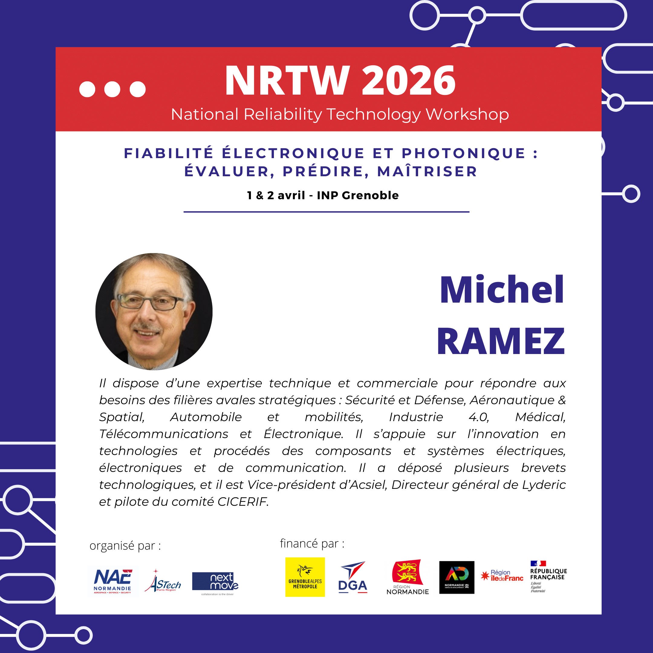 Il nous livrera son point de vue sur les besoins de fiabilité dans le domaine électronique, en lien avec les travaux menés au LETI, et commentera les séquences à l’ordre du jour du NRTW 2026.